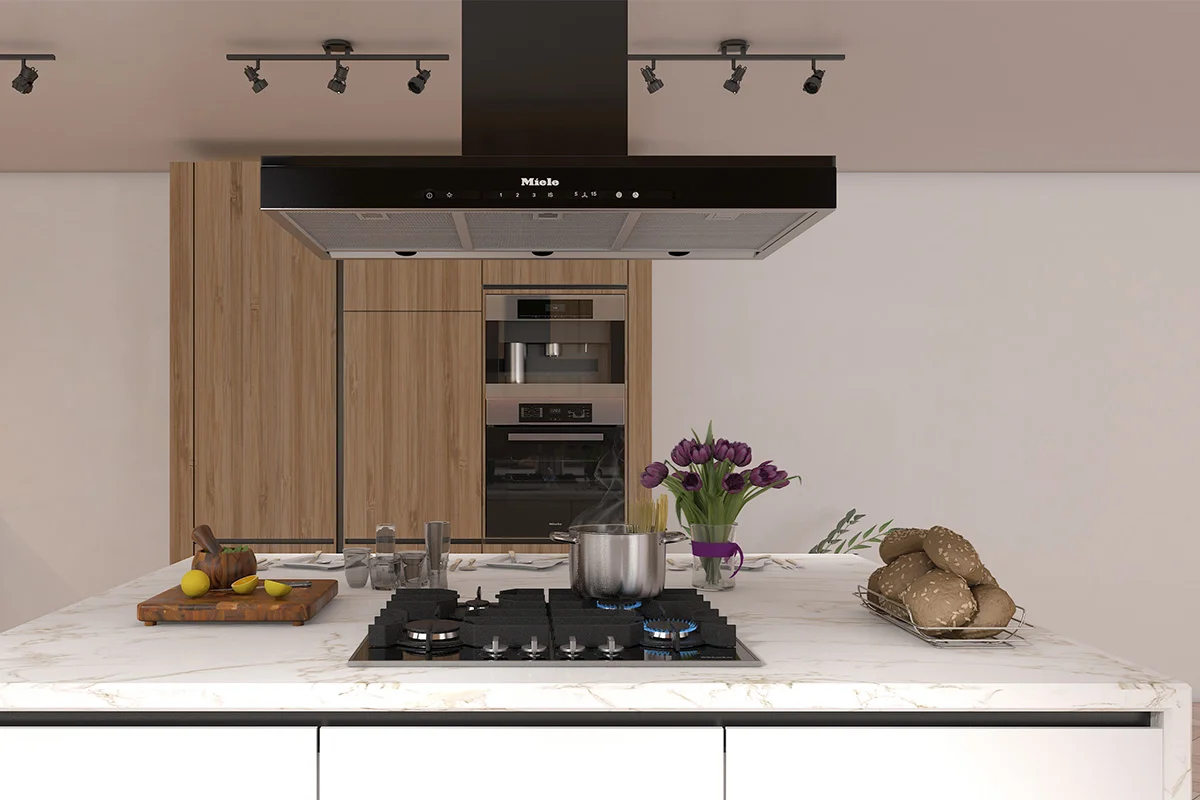 Integrated with the living or dining area, this layout creates a seamless flow between spaces, perfect for modern homes and entertaining.